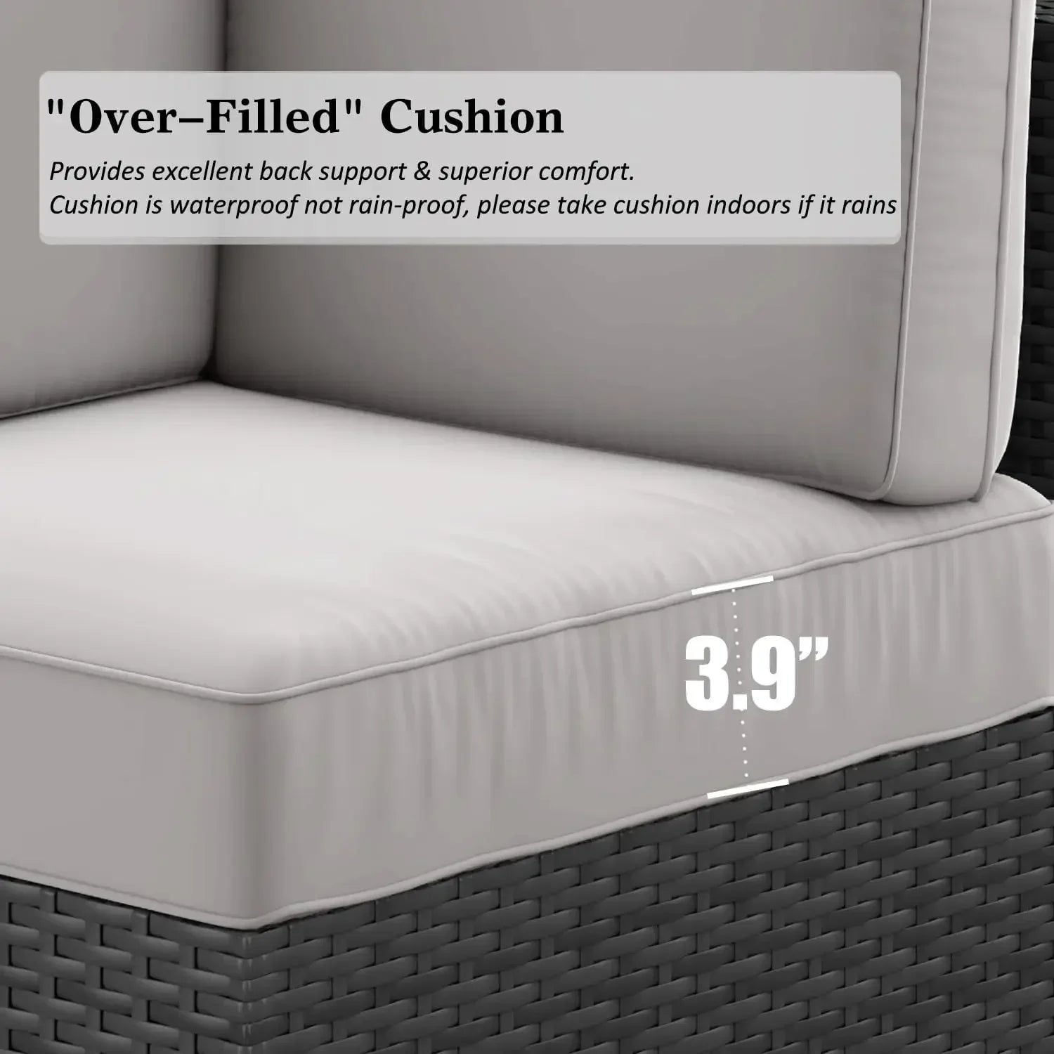- FLEXIBLE COMBINATION SETTING: 15 pieces outdoor furniture sets come with 4 x Corner Sofas, 8 x Single Sofas, 1 x Fire Pit Table, and 2 x Coffee Table. It allows being pieced together in any combination to suit your needs and match your space