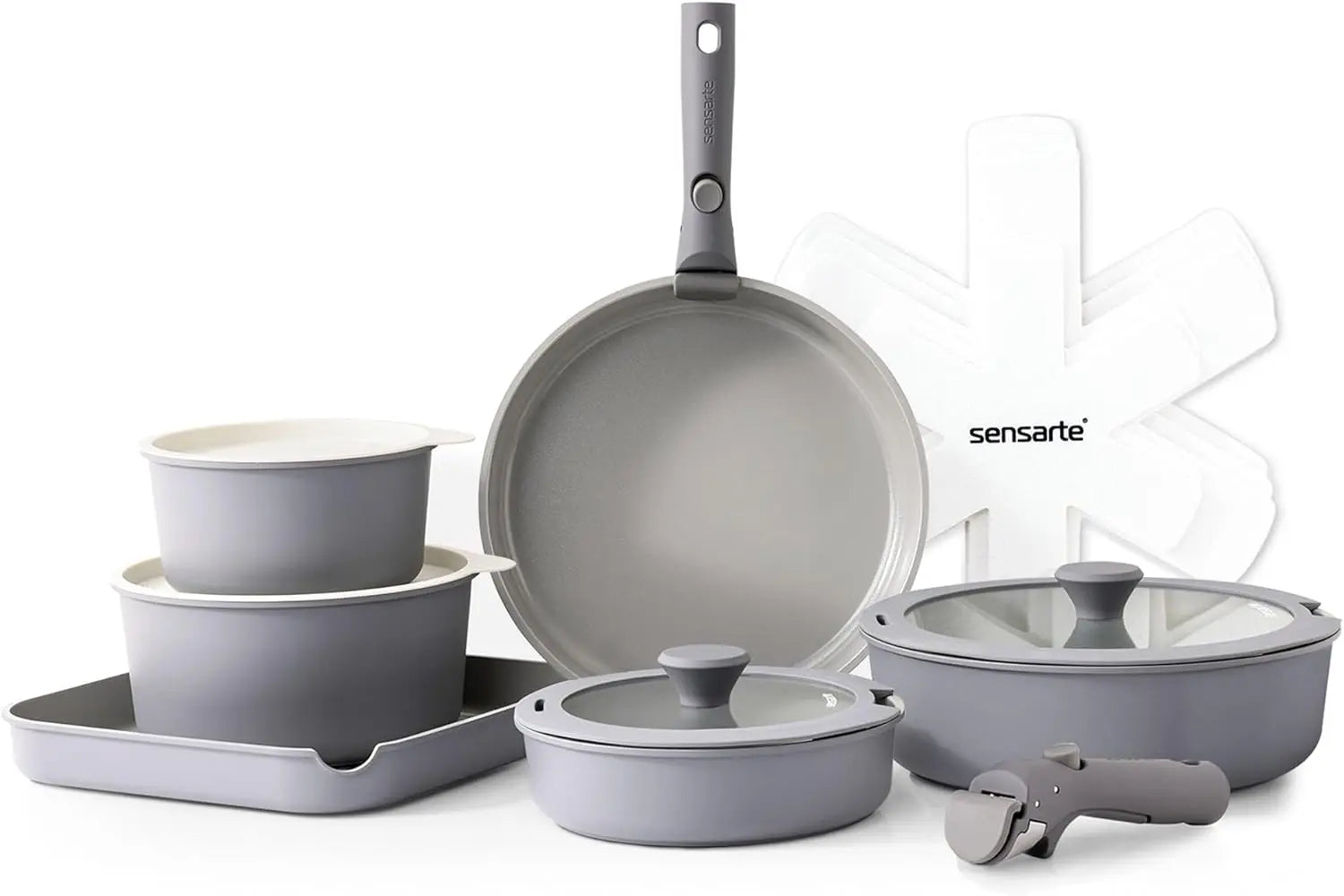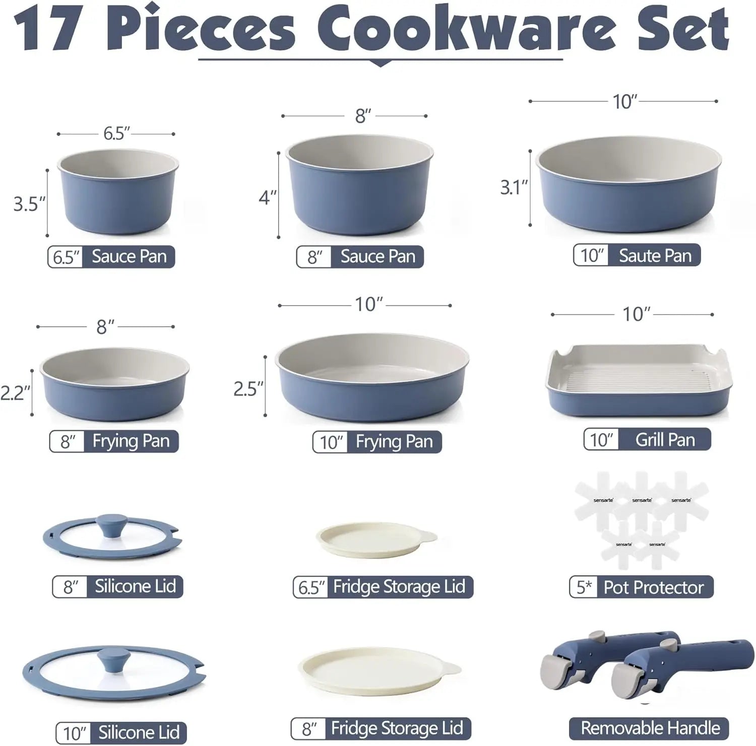 17 Piece Nonstick Ceramic Pots and Pans Set w/ Detachable Handle