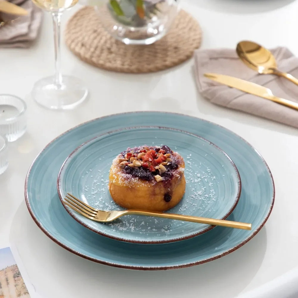 Extraordinary appearance. The vancasso Ess tableware set is made by hand from high-quality and environmentally friendly earthenware. Exquisite brown eyelash edge, modern swirl design, two-sided pretty smooth glaze, unique stylish blue color tone simply creates a unique mild harmony.