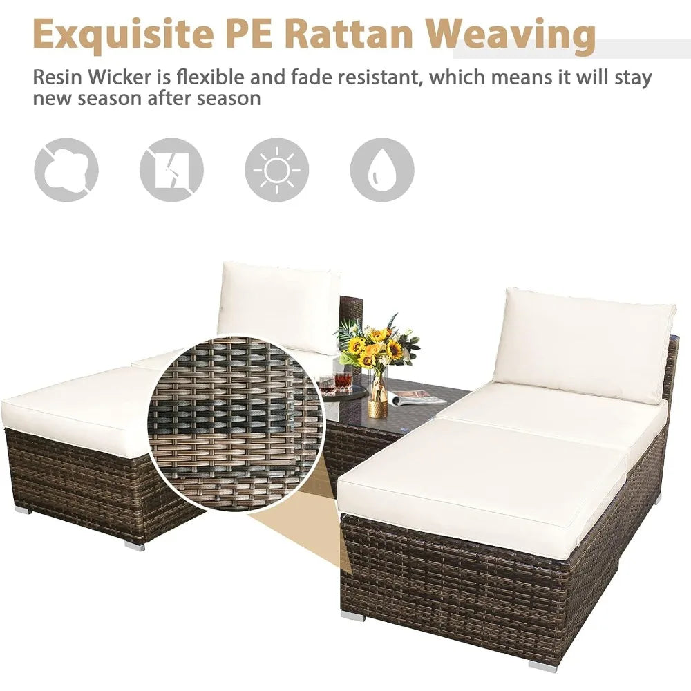 5 Piece Wicker Lounge Chair Set with Tempered Glass Coffee Table