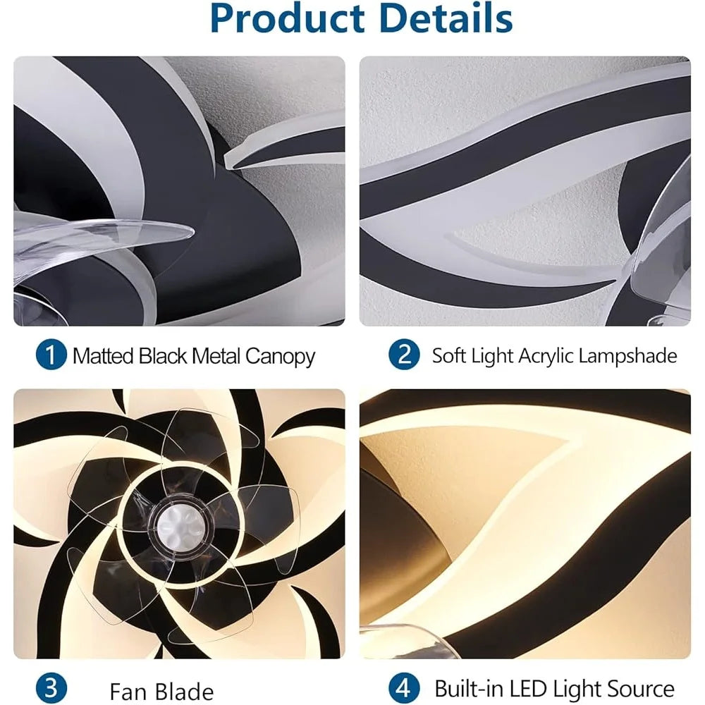 —This modern and fashionable geometric ceiling fan with light has a built-in silent pure copper reversible motor, which can bring stable and strong power without noise, and the bladeless ceiling fan have the function of forward and reverse. The wind speed of the fan with light can be controlled by the ote control, and the suitable and comfortable wind force can be adjusted, which is suitable for rooms of 150-300 ft², such as dining room, bedroom, living room, children's room or nursery and so on.
