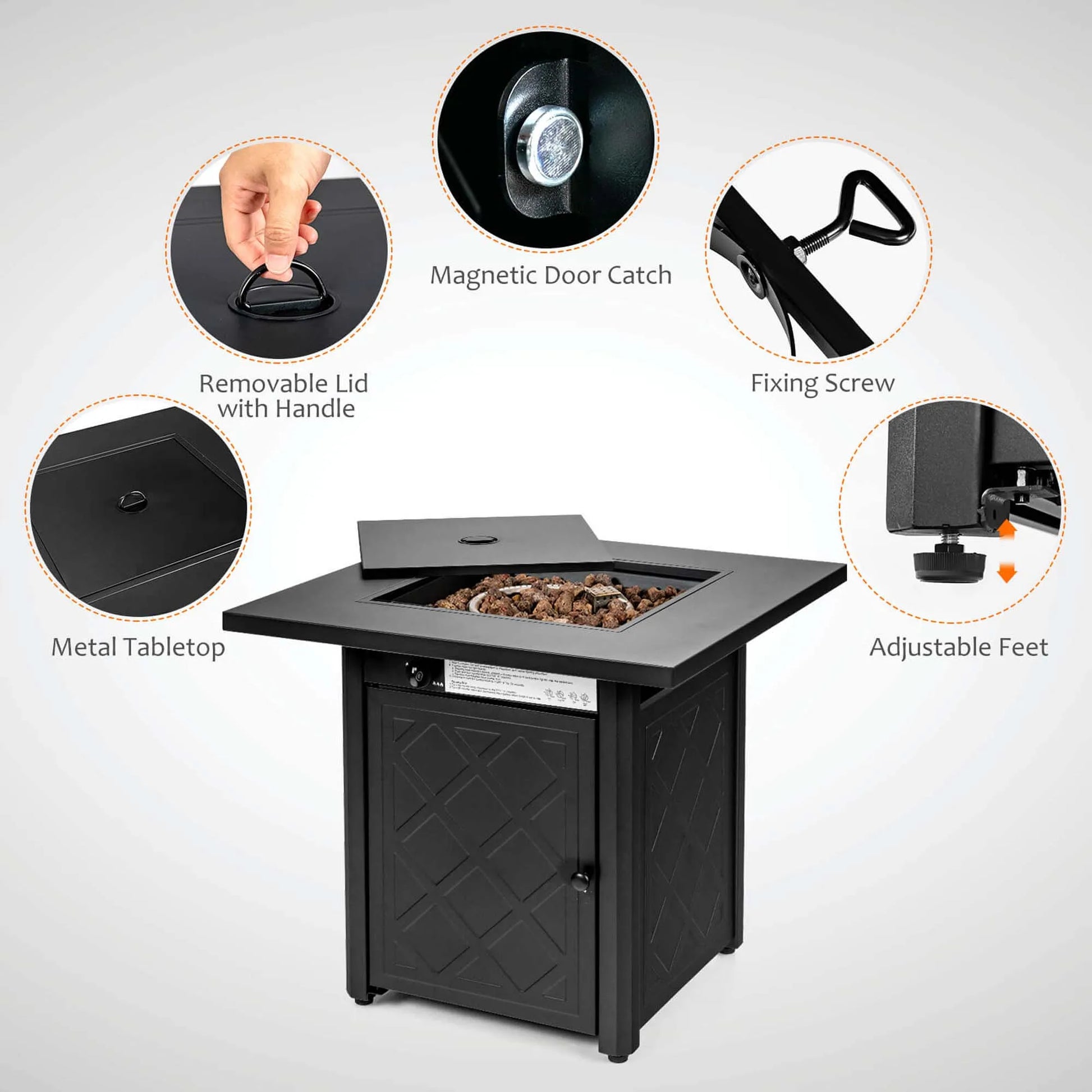 Overall Dimension of Fire Pit Table: 28" x 28" x 25.5" (L x W x H)
