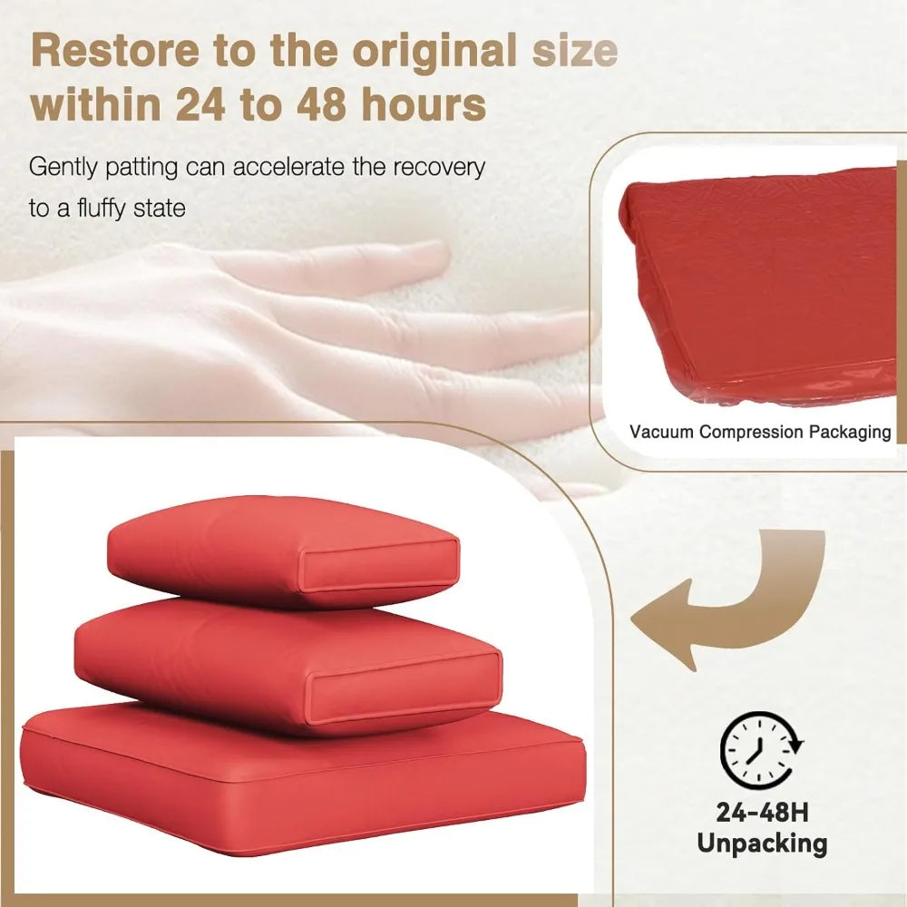 Here's a rewritten product description based on the provided information: Our outdoor patio furniture set comes with a premium waterproof cover made from durable Oxford cloth, featuring a dual-layer design with PVC coating on both sides. This ensures your furniture stays dry even on rainy days. The set includes a 44-inch propane fire pit table certified by CSA, providing up to 60,000 BTU of heat for your yard. Please note that the gas tank and propane are not included, and they should weigh less than 20 pounds. The patio sofa cushions are made from thick, high-resilience sponges for a comfortable seating experience. The removable cushions have washable covers, making them easy to maintain. Constructed from powder-coated galvanized steel, our furniture is highly durable and resistant to corrosion. The PVC rattan material can withstand various weather conditions, including sun exposure, moisture, and temperature changes, making it an excellent choice for outdoor use. This patio set offers versatile seating configurations, allowing you to arrange the furniture in any desired position. It can be easily relocated within your patio or deck to accommodate different activities such as sunbathing, dining, or casual conversations. This versatility ensures that the set can be fully utilized in various areas of your outdoor space.