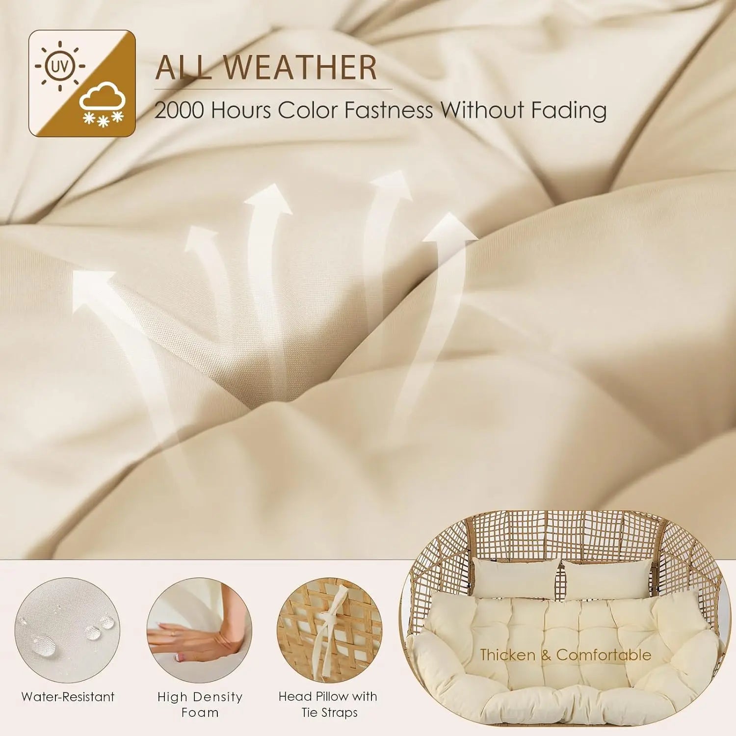 Double Egg Chair Indoor Outdoor Stationary Oversized Thicken Padded Cushions,2 Person Egg Loveseat Chair,680 lbs Extra Large Lounge Chair for Patio Balcony Porch Backyard Beige, Xmas Gift